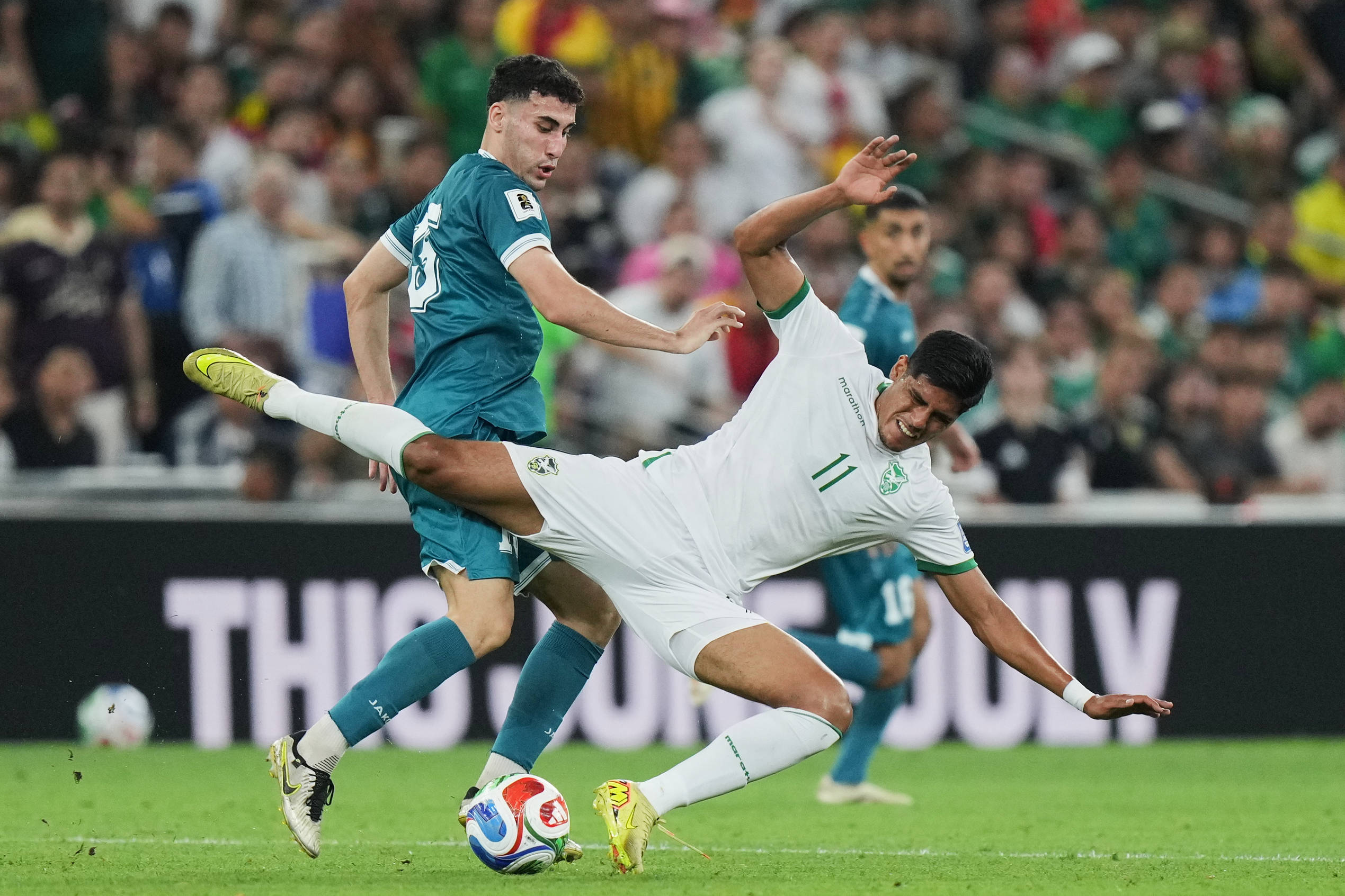 3月31日,伊拉克队球员伊斯梅尔(左)和玻利维亚队球员纳瓦在比赛中拼抢。新华社/好意思联伊拉克男足国度队被誉为“好意思索不达米亚雄狮”,上一次晋级世界杯决赛圈还要回顾到1986年墨西哥世界杯。“咱们比任何时候都更接近晋级!期待好像重返世界杯!”濒临世界名次低于伊拉克队的玻利维亚队,伊拉克球迷贾西姆充满信心。